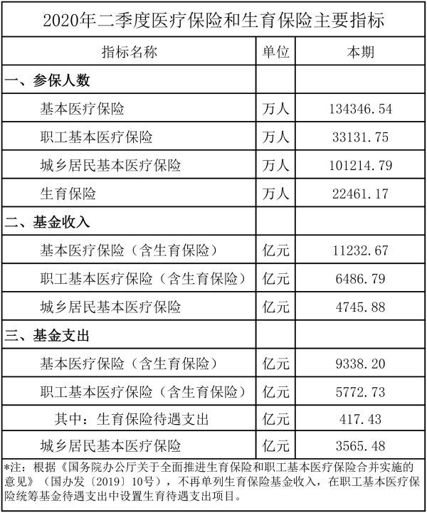 2020年二季度医疗保险和生育保险主要指标