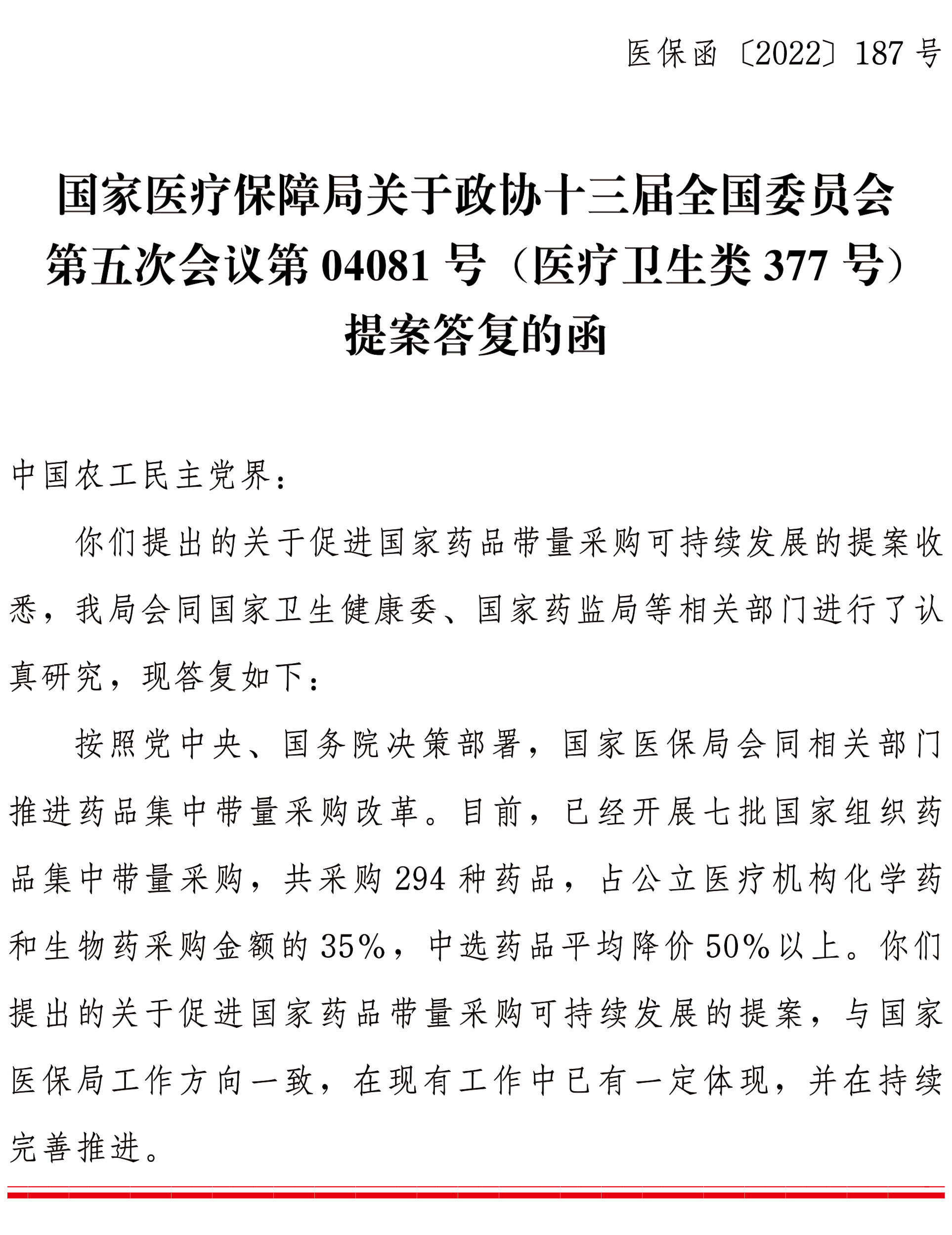 国家医疗保障局关于政协十三届全国委员会第五次会议第04081号 (医疗卫生类377号) 提案答复的函