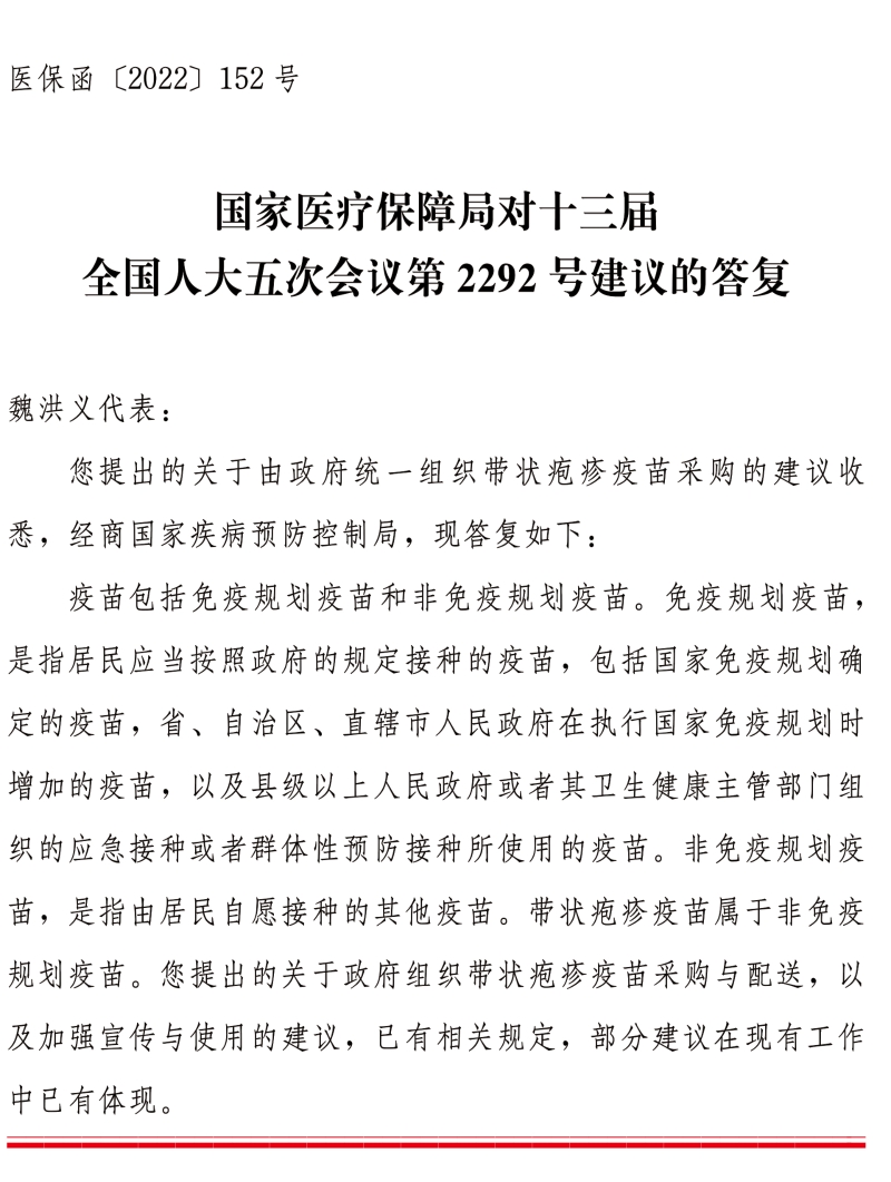 国家医疗保障局对十三届全国人大五次会议第2292号建议的答复