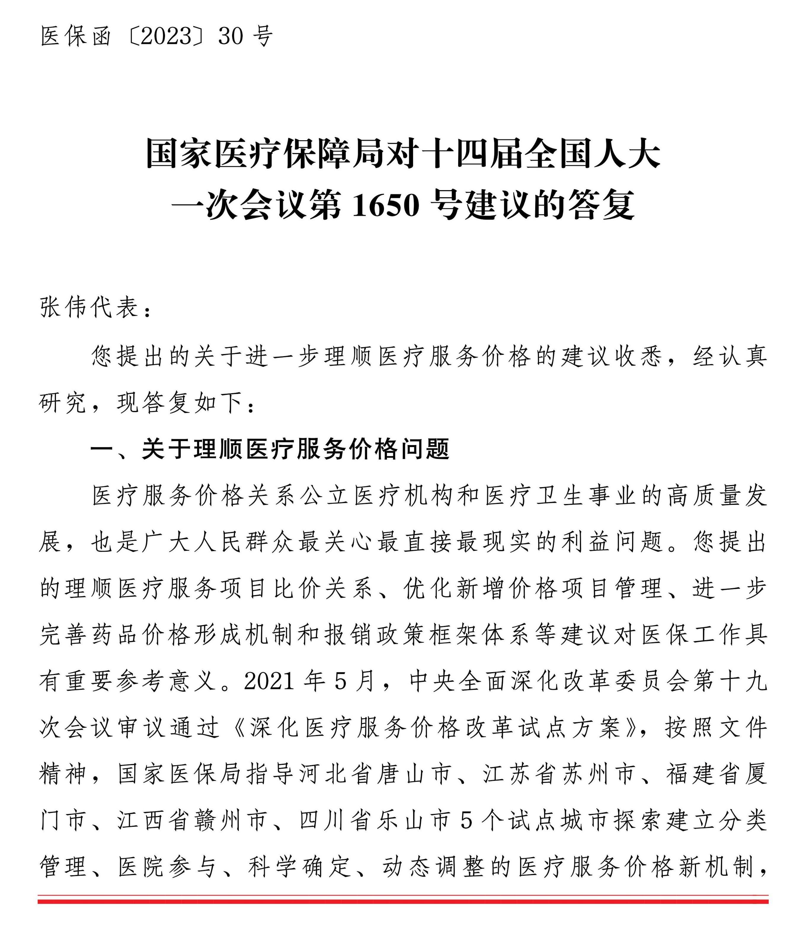 国家医疗保障局对十四届全国人大一次会议第1650号建议的答复