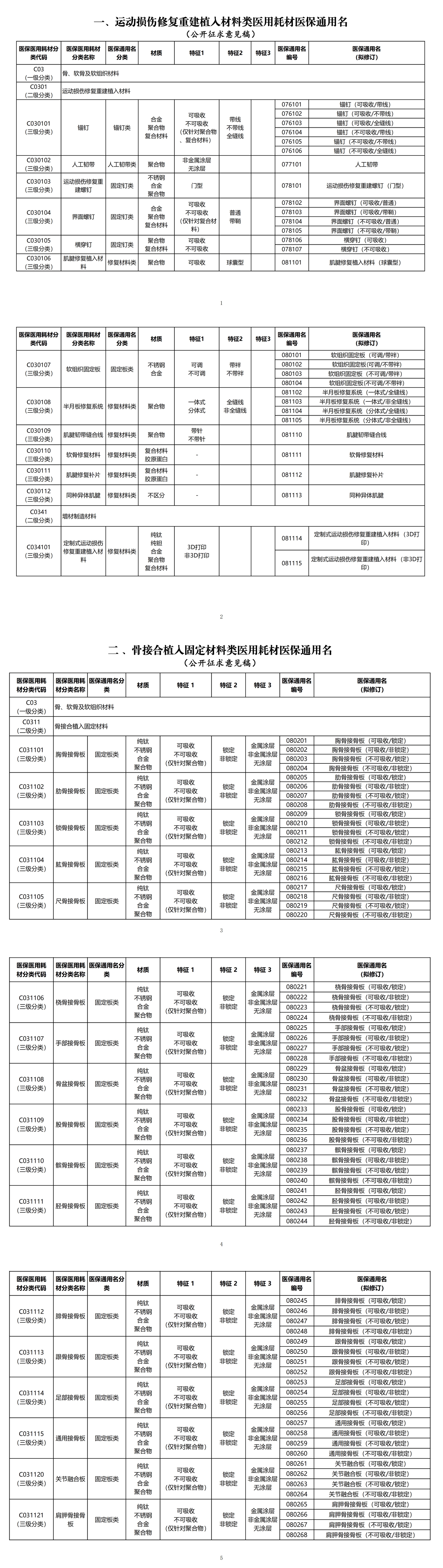 - 名称: 国家医疗保障局关于《“骨、软骨及软组织植入材料”6类医用耗材医保通用名》公开征求意见的公告
