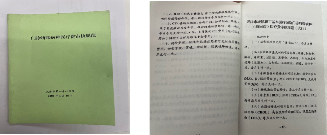 2001年起,天津市人社局开始建立门诊特定病种(以下简称“门特”),陆续将肾透析、糖尿病、肺心病等疾病纳入门特范围,至2009年,建立起13个门特病种并延续至今。患者门特就医享受与住院相同的报销待遇,但需遵循严格的门特药品及检查治疗范围。