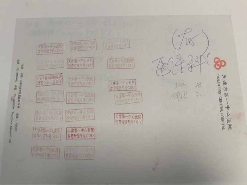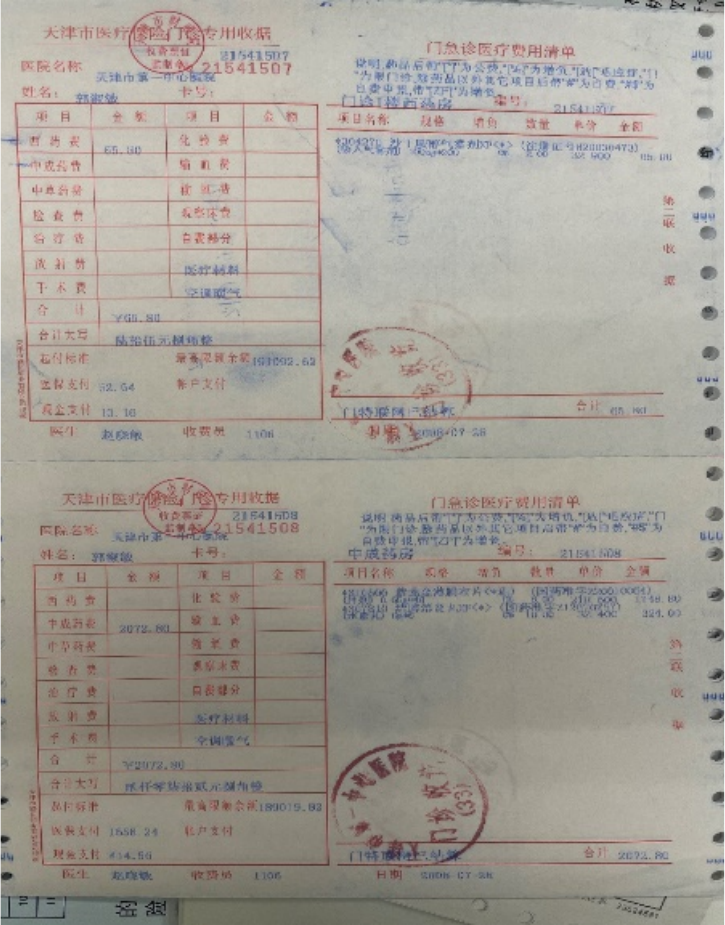 (2008年天津市第一中心医院门诊票据)
