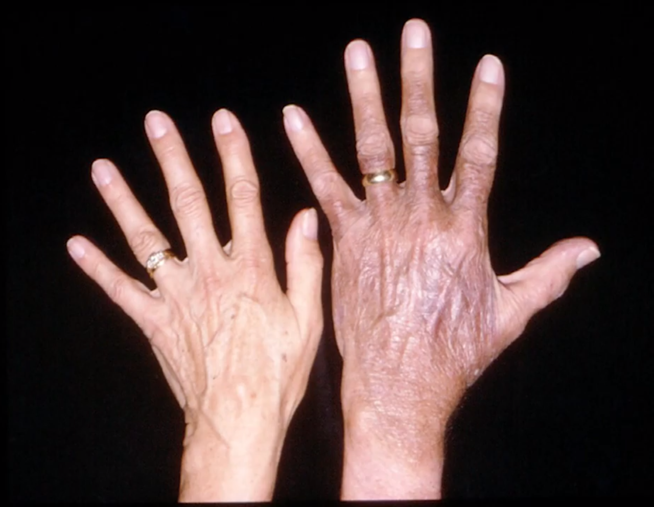 2、典型部位的多发性皮肤黏膜毛细血管扩张