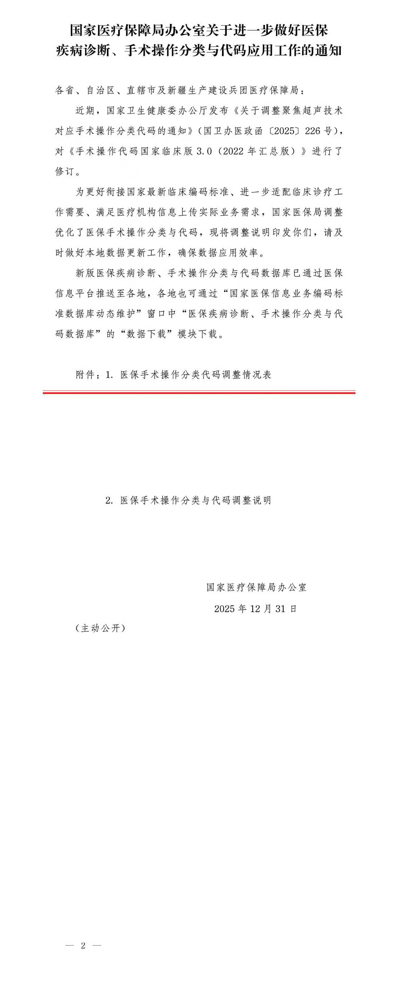 - 名称: 国家医疗保障局办公室关于进一步做好医保疾病诊断、手术操作分类与代码应用工作的通知