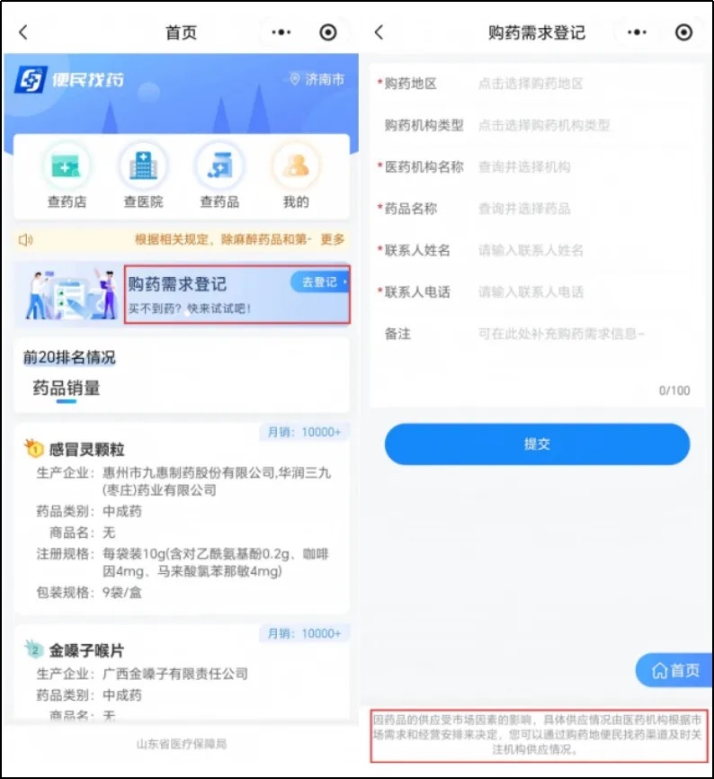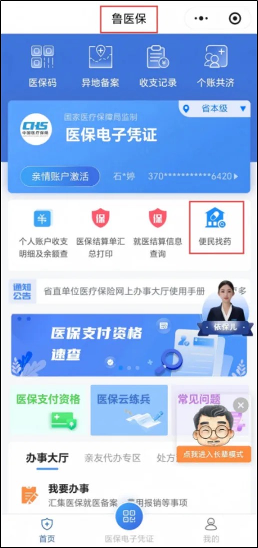 第一步,通过微信或支付宝“鲁医保小程序”点选“便民找药”模块。