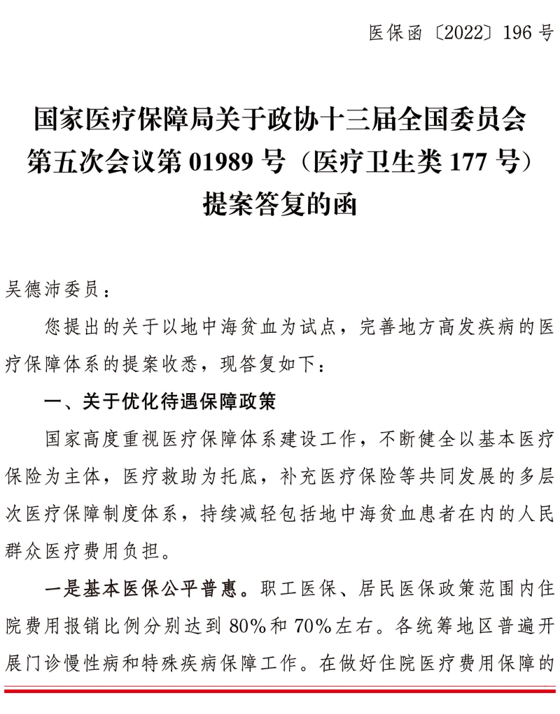 国家医疗保障局关于政协十三届全国委员会第五次会议第01989号(医疗卫生类177号)提案答复的函