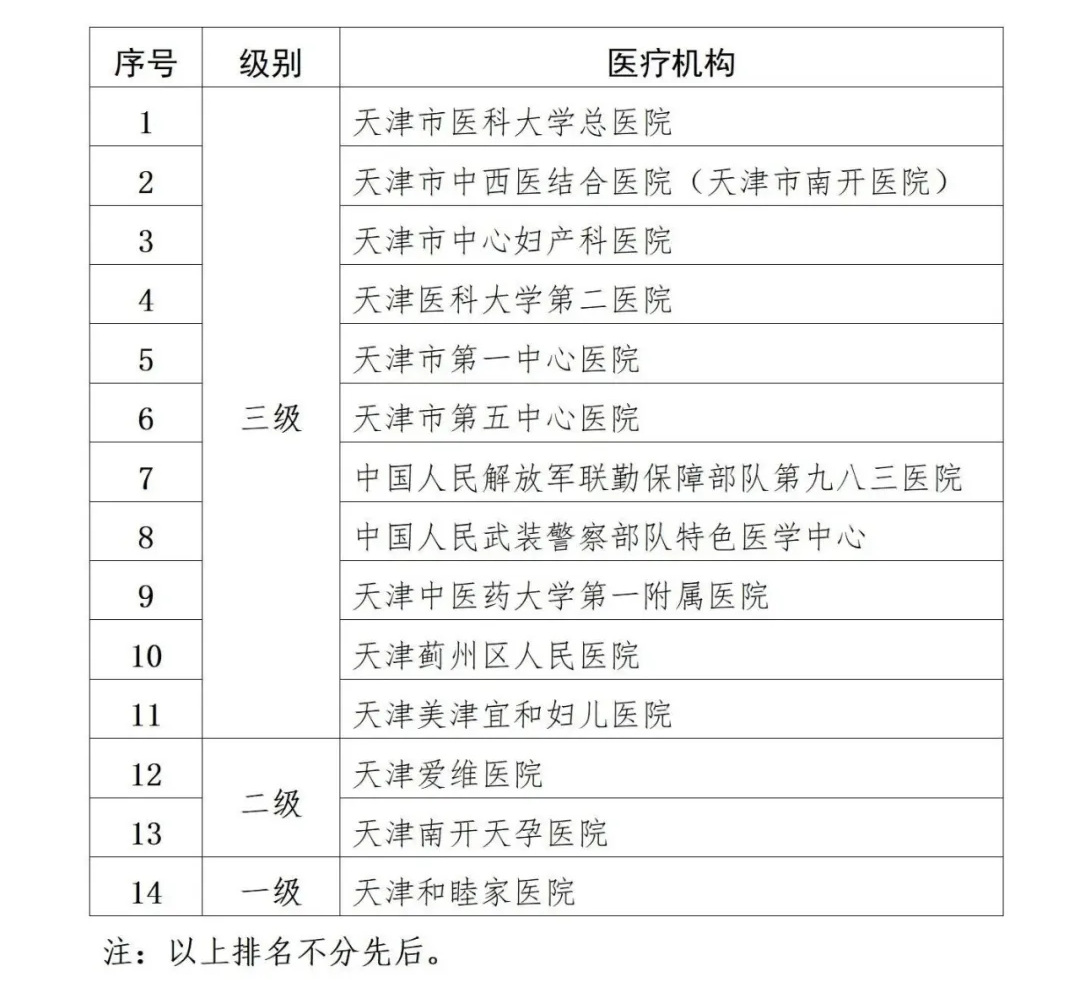附表:天津市开展辅助生殖且纳入医保定点的医疗机构