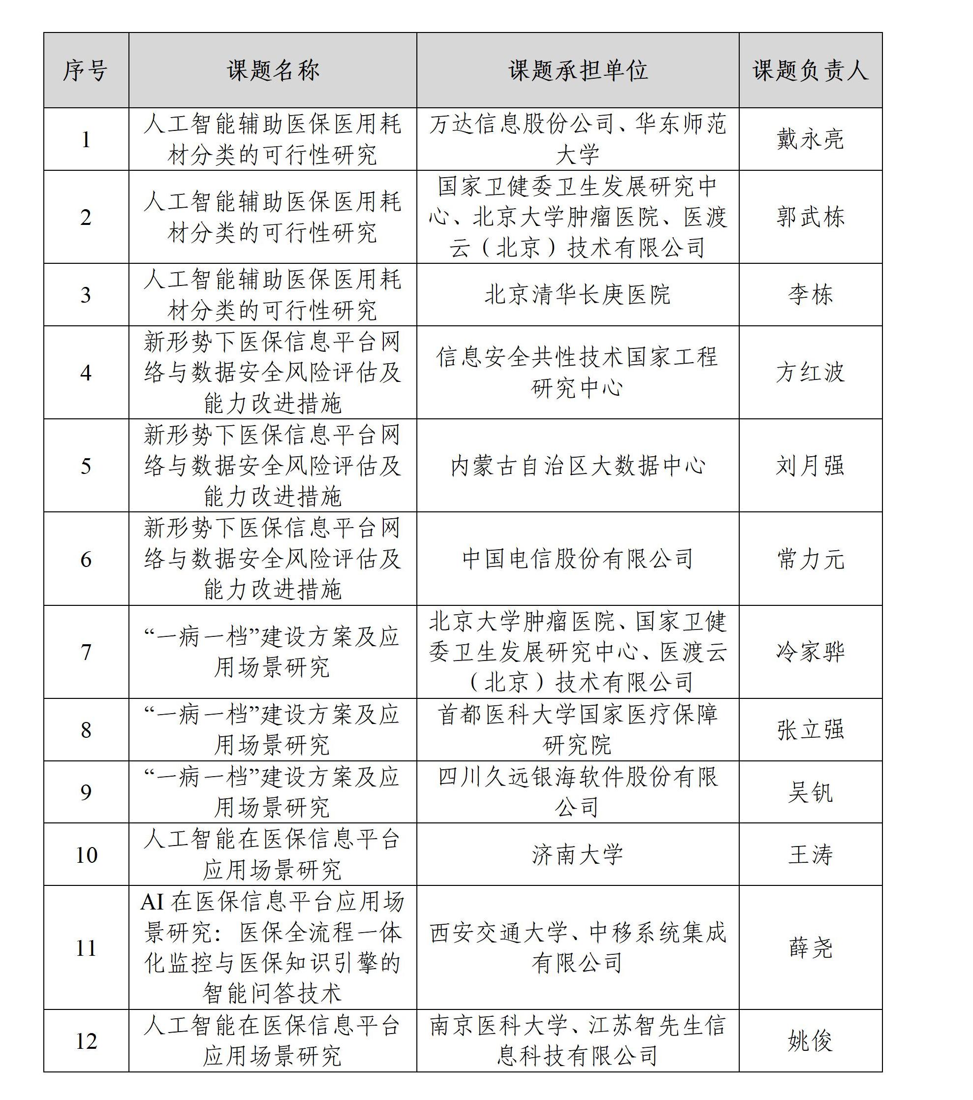 关于发布2025年度国家医疗保障局大数据中心公开征选课题承担单位评审结果的公告