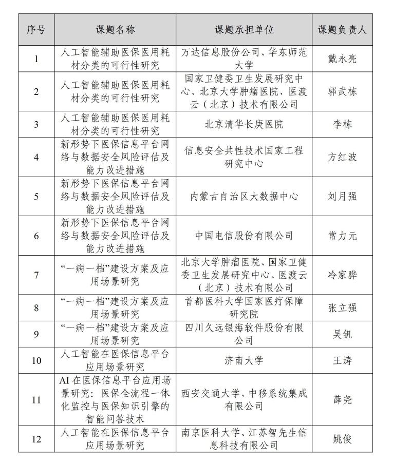 2025年6月25日,发布了《国家医保局大数据中心关于公开征选2025年度课题承担单位的公告》。截至7月5日,共收到56份申报书。经评审,确定相关课题承担单位如下: