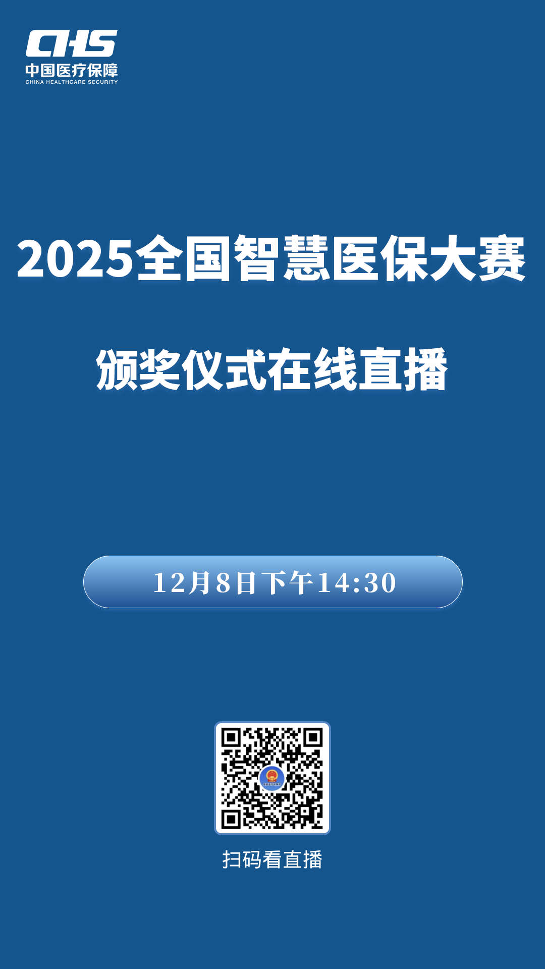 2025全国智慧医保大赛颁奖仪式,将于2025年12月8日(周一)下午14:30,在上海张江科学会堂举行。本次活动以“诚邀八方英才 智助医药创新”为主题,将为创新药物研发、长护险、金融保险、医保经办、基金监管、网络与数据安全等11大领域共计178个获奖团队颁奖,敬请关注。欢迎扫码预约观看直播,共赴智慧盛宴!
