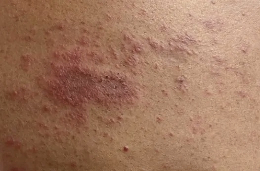 我又仔细观察了一下患者背部的皮疹,虽然增多了,但与之前的形态不太一样。水泡相比之前减少了,略有硬化。