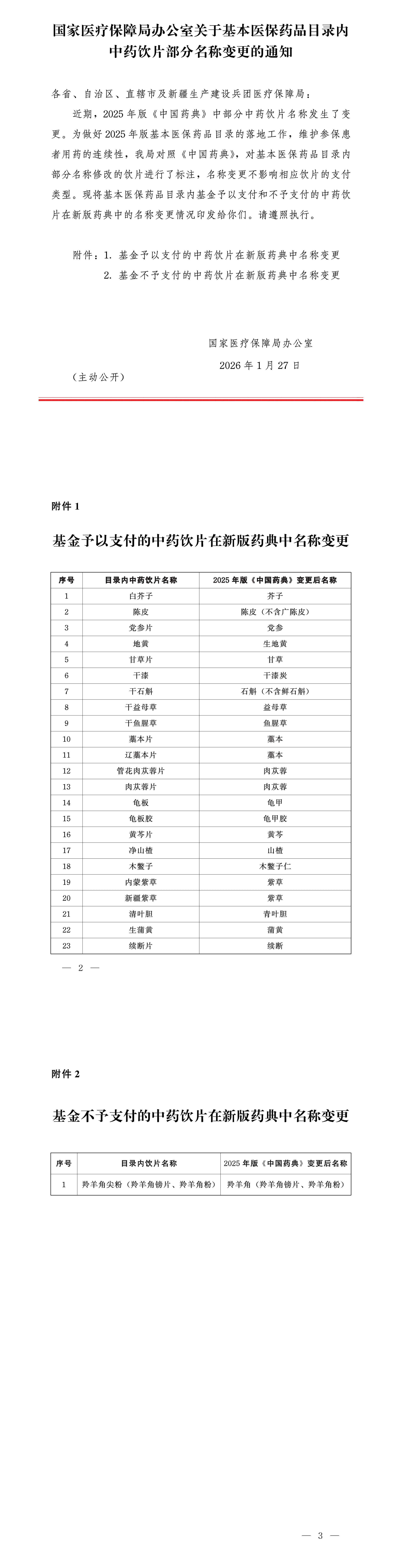 文件下载链接:关于基本医保药品目录内中药饮片部分名称变更的通知.txt