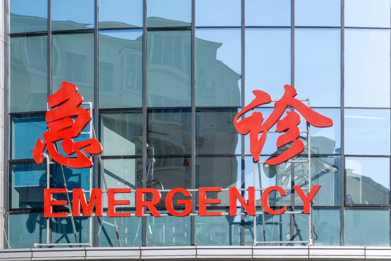 一位年轻男子被家人搀扶着进入了急诊大厅,面色苍白、眼神迷茫,额头布满了细密的汗珠,双手捂着肚子。