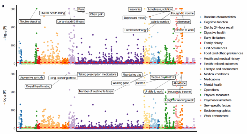 除了上述研究,另有一项研究依托英国生物样本库(UK Biobank)纳入约 69 万名 38~73 岁参与者,对 3,735 个表型变量进行全表型关联研究(PheWAS)后同样得出结论: