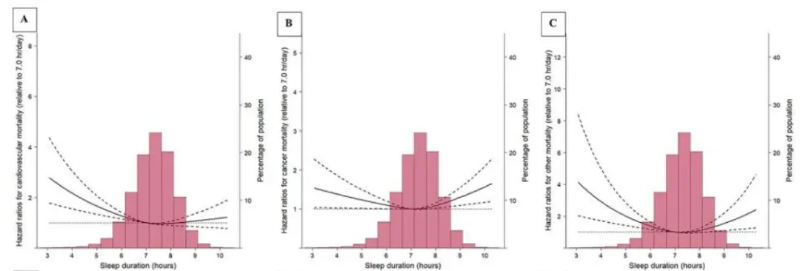 一项发表在 JAMA Network Open,纳入 32 万名东亚成年人的大型队列研究表明,7 小时睡眠全因死亡风险最低,而超过或不足 7 小时的睡眠时长与全因死亡和心血管疾病死亡风险增加有关 [2]。